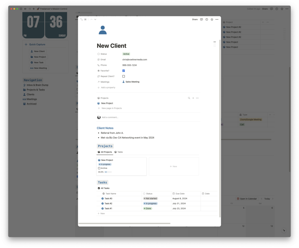 Syncing & Linking: All Clients, Projects, Tasks, and Meetings link together for ease of management for your business.